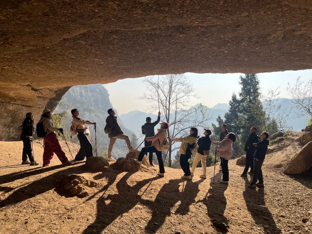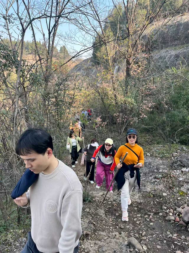 穿越核心景点“窗户洞”时,洞内漆黑潮湿,路面湿滑难行。大家自发手拉手连成一条“生命锁链”,黑暗中,彼此的呼吸声、脚步声与鼓励声交织在一起,信任与默契在无声中传递。当全员走出山洞,沐浴在阳光中的那一刻,大家忍不住欢呼雀跃。登顶观景台时,连绵的群山尽收眼底,微风拂过,所有的疲惫都烟消云散,这正是突破自我的最好证明。